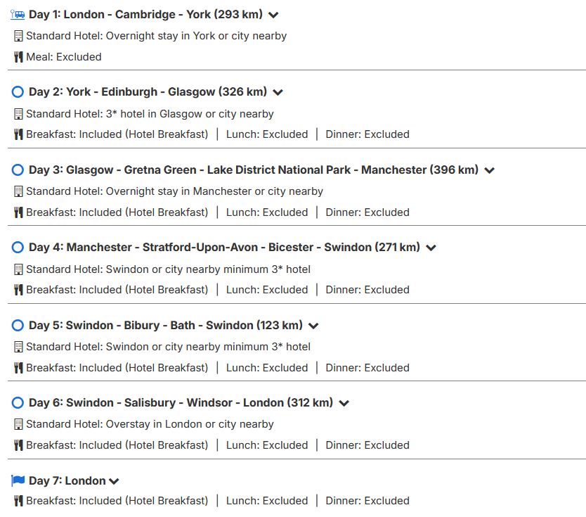 *Guests are required to arrive 1 day before the tour starts (Saturday).*