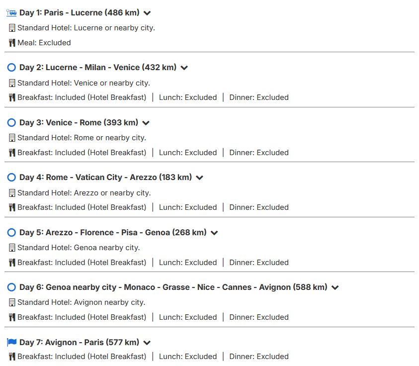 Must Arrive 1 Day Earlier at Paris for Join This Tour (Depart every Saturday from Paris)