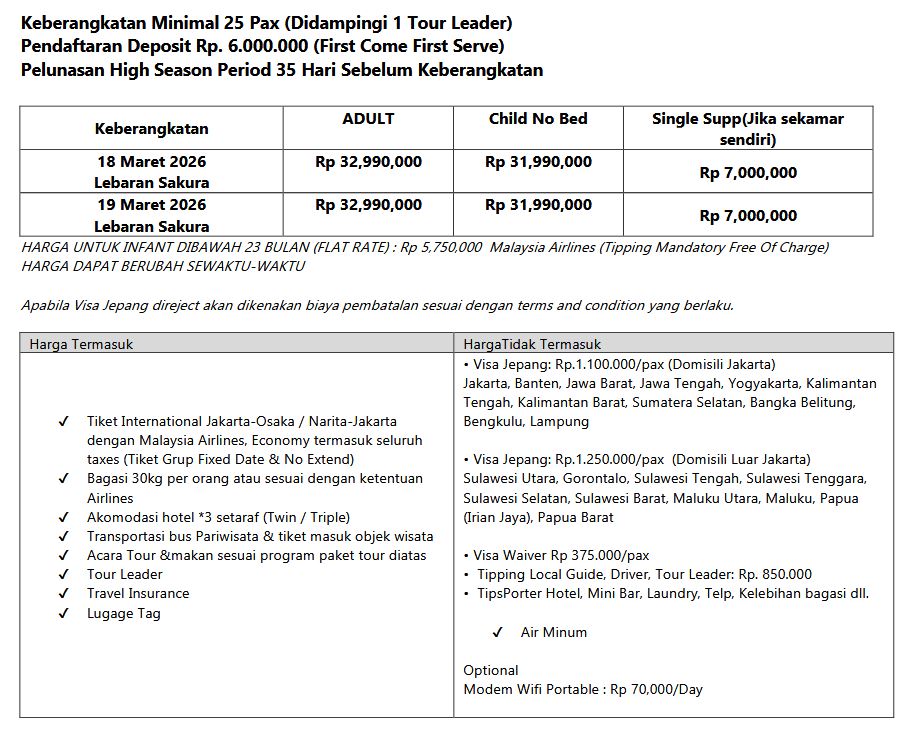 | Visa Japan Wiver orang | Rp 375.000 | Rp 375.000 |