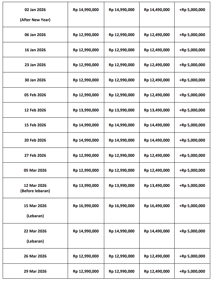 Single orang Rp 17.990.000 Rp