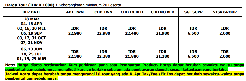 | Visa Group orang | Rp 2.600.000 | Rp 2.600.000 |
