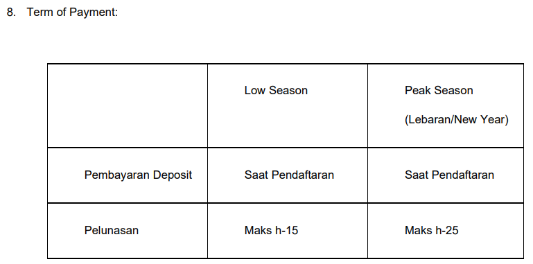 ▪ 16-21hari sebelum keberangkatan : 100% Down Payment Hangus