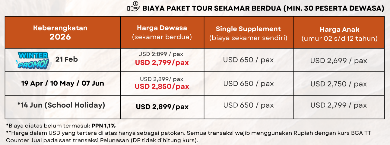 | Twin orang | Rp 47.303.100 | Rp 45.613.100 |