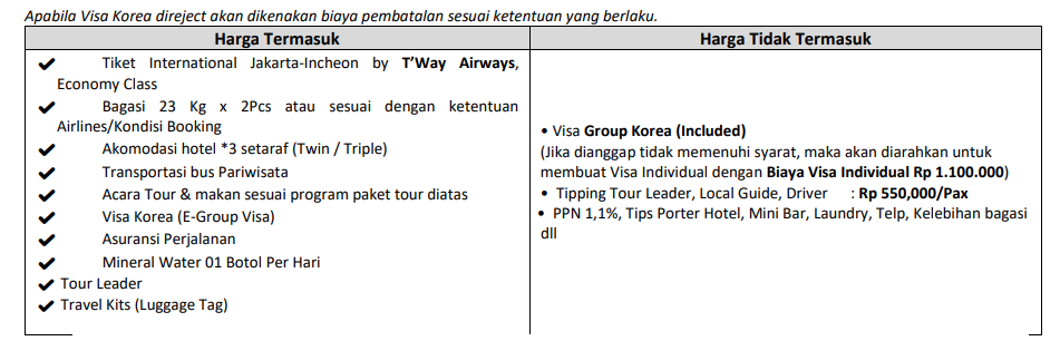 4. Untuk Group Visa Korea, kami berhak melakukan penolakan kelayakan untuk Group Visa dan tamu harus