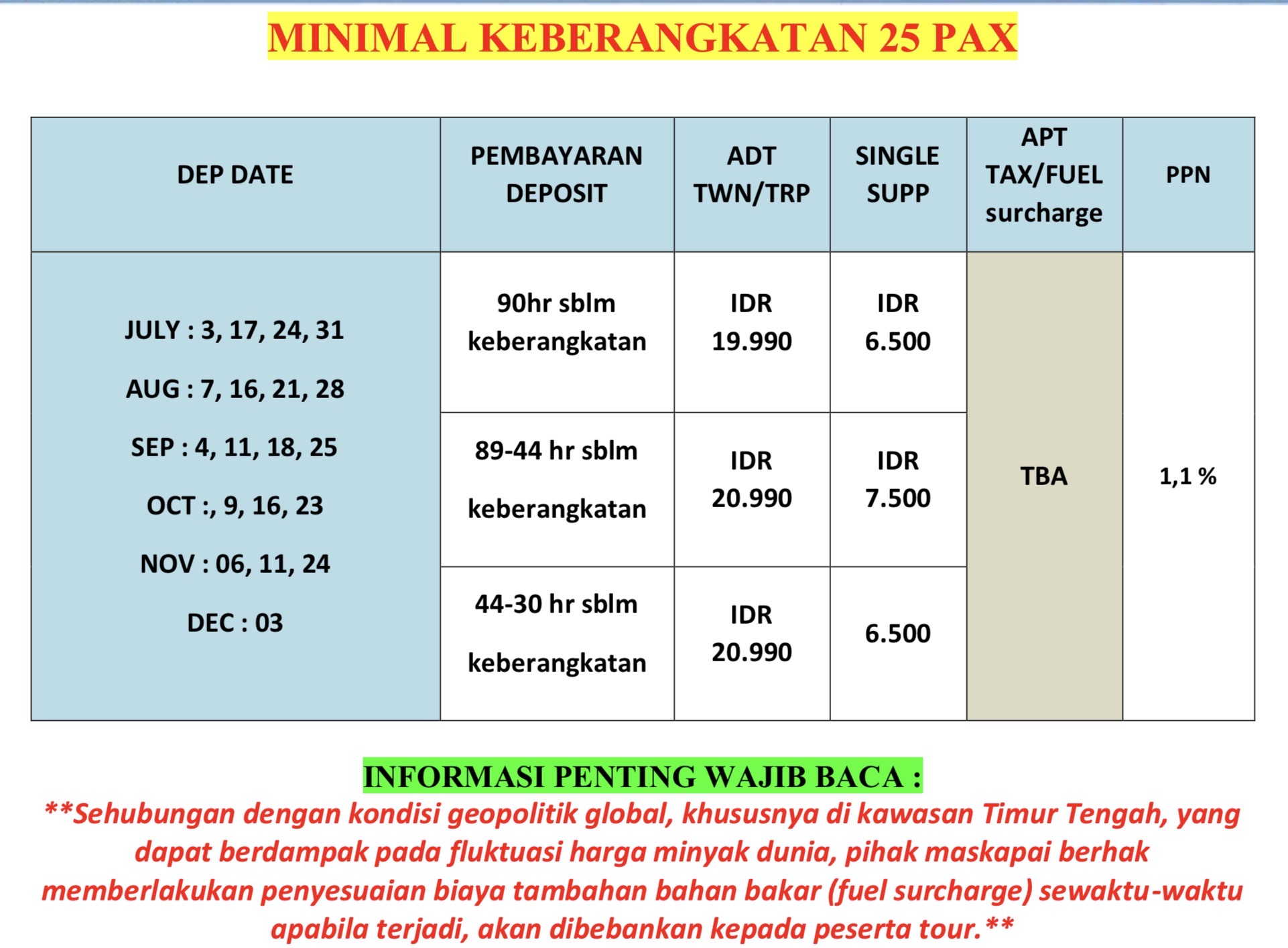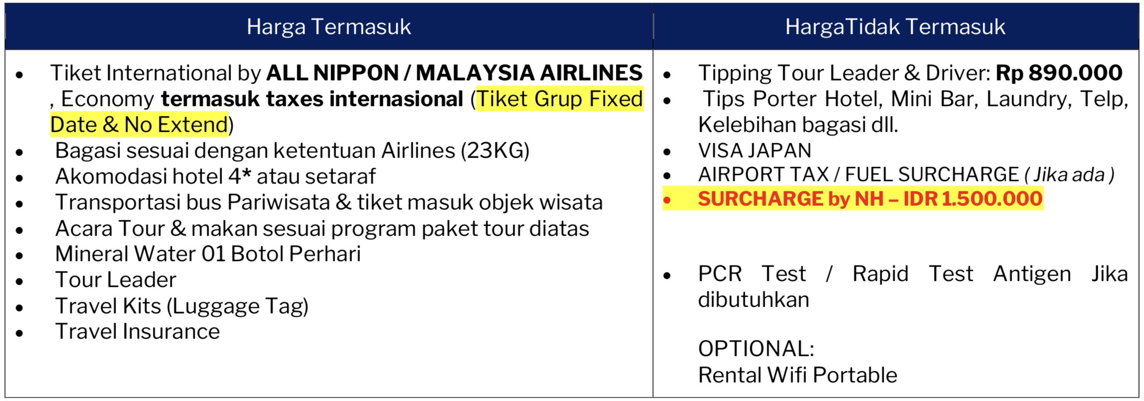 | SURCHARGE by NH orang | Rp 1.500.000 | Rp 1.500.000 |