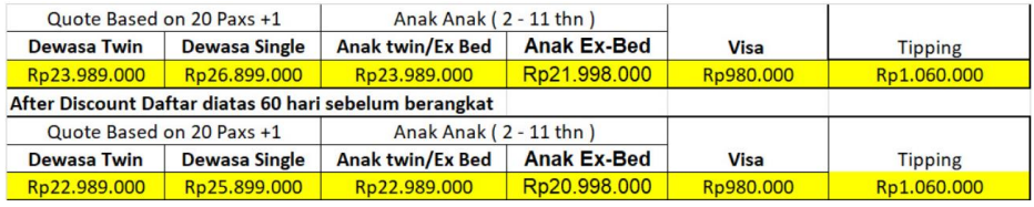 **Jadwal acara dapat dibolak balik pada saat tour berlangsung selama dinegara tujuan namun tanpa mengurangi isi tour yang ada.