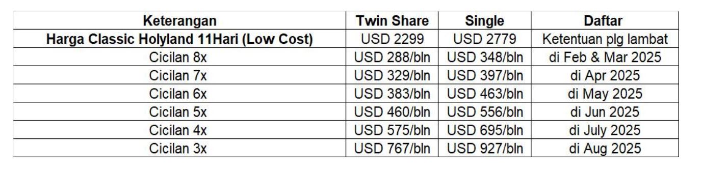Pelunasan paling lambat 35 hari sebelum keberangkatan