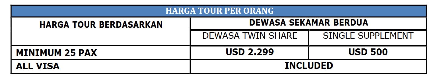 • Program acara tour dan makan (full board) sesuai dengan jadwal dalam brosur di atas