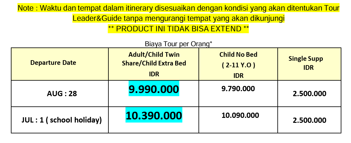 | Twin orang | Rp 9.990.000 | Rp 9.990.000 |