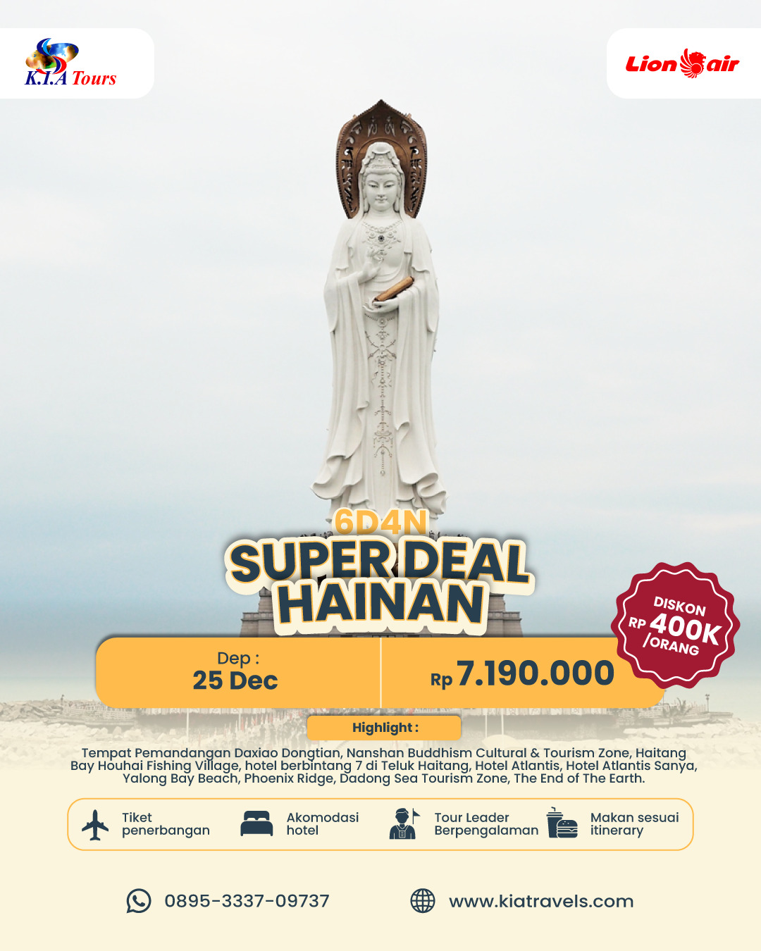Berangkat dari Jakarta, naik pesawat menyenangkan Anda ke Sanya. Jemput semua tamu dari