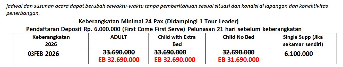 Twin 4 PAXs orang Rp 33.690.000 Rp 33.690.000
