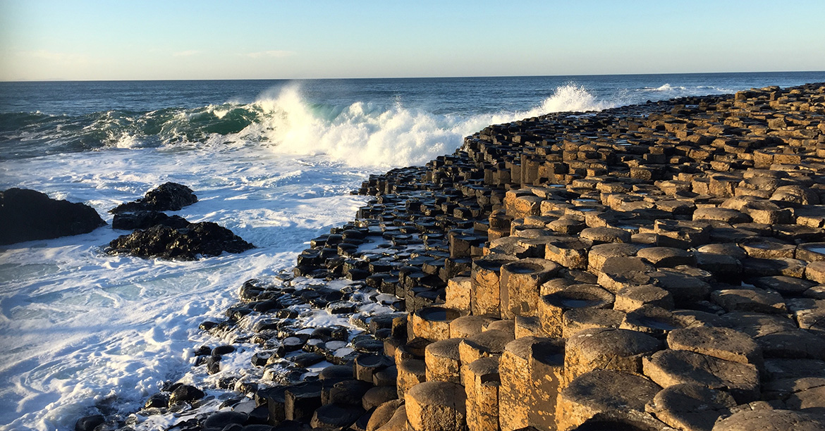 VIEW GIANT’S CAUSEWAY di Bushmills keajaiban geologi yang terbentuk secara alami akibat aktivitas vulkanik kuno di